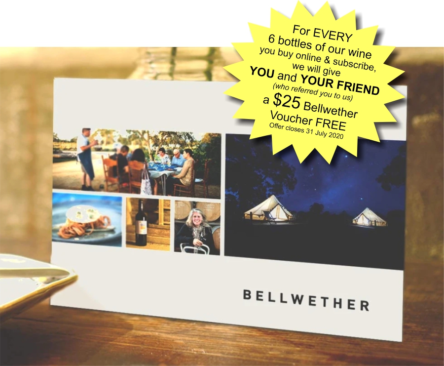 If your friends are keen to try some of our wine and order any 6 wines or more - we will give you a $25 voucher to spend on anything you choose, wine, glamping, camping, dining. The more you recruit the more wine you can buy or come and stay with us. There is no limit to the number of vouchers you can accumulate.  For more details click HERE